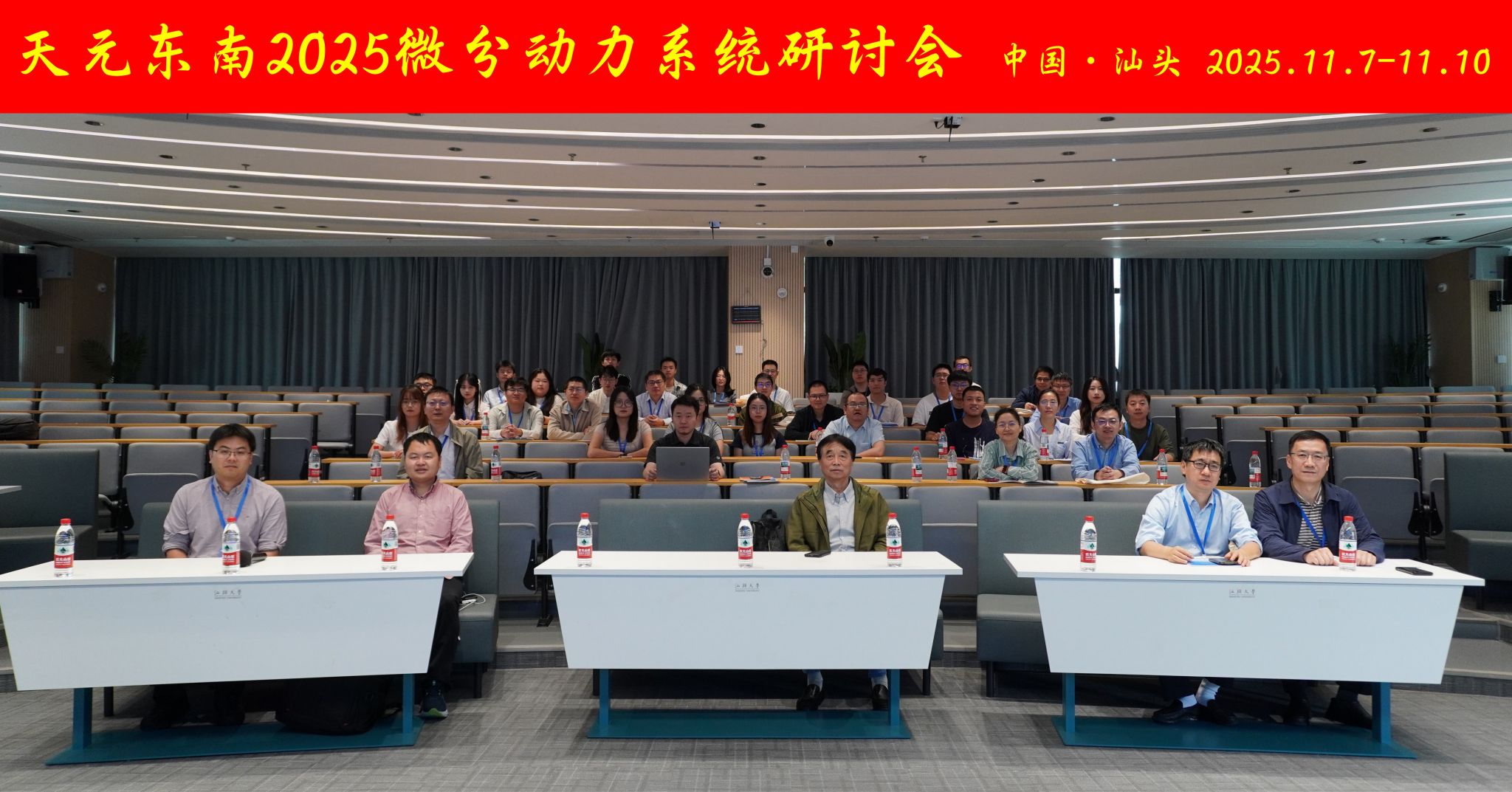 2025年11月7日—10日,由国家天元数学东南中心与数学与计算机学院共同主办的天元东南2025微分动力系统研讨会在汕头大学东海岸校区及金海湾酒店举行。来自北京大学、中国科学技术大学、复旦大学、四川大学、厦门大学、重庆大学、苏州大学、中央财经大学等高校的近三十位专家学者参加了此次研讨会。