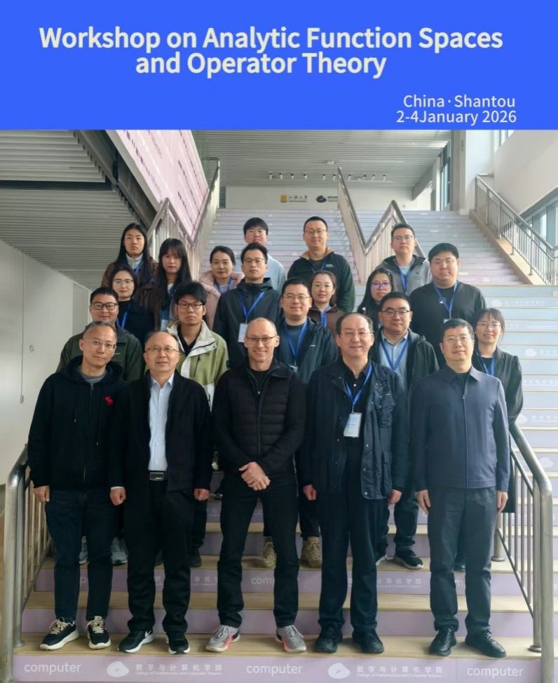 由汕头大学数学与计算机学院数学系举办的 “Workshop on Analytic Function Spaces and Operator Theory(解析函数空间与算子理论研讨会)” 于2026年1月2日 - 4日在汕头大学东海岸校区举行,来自芬兰和国内10所高校20多位专家学者参加了此次研讨会。